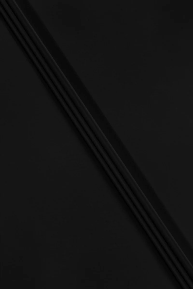 Italiaanse superkostuumwol in zwart. Vlezig, elastisch materiaal met satijnweefsel (glanzend) gemaakt van verginwol met toevoeging van elastaan (verginwol komt van het eerste scheren van schapen, dus het is zeer delicaat en zacht). Een coupon om een jurk, rok, broek of jasje te naaien.