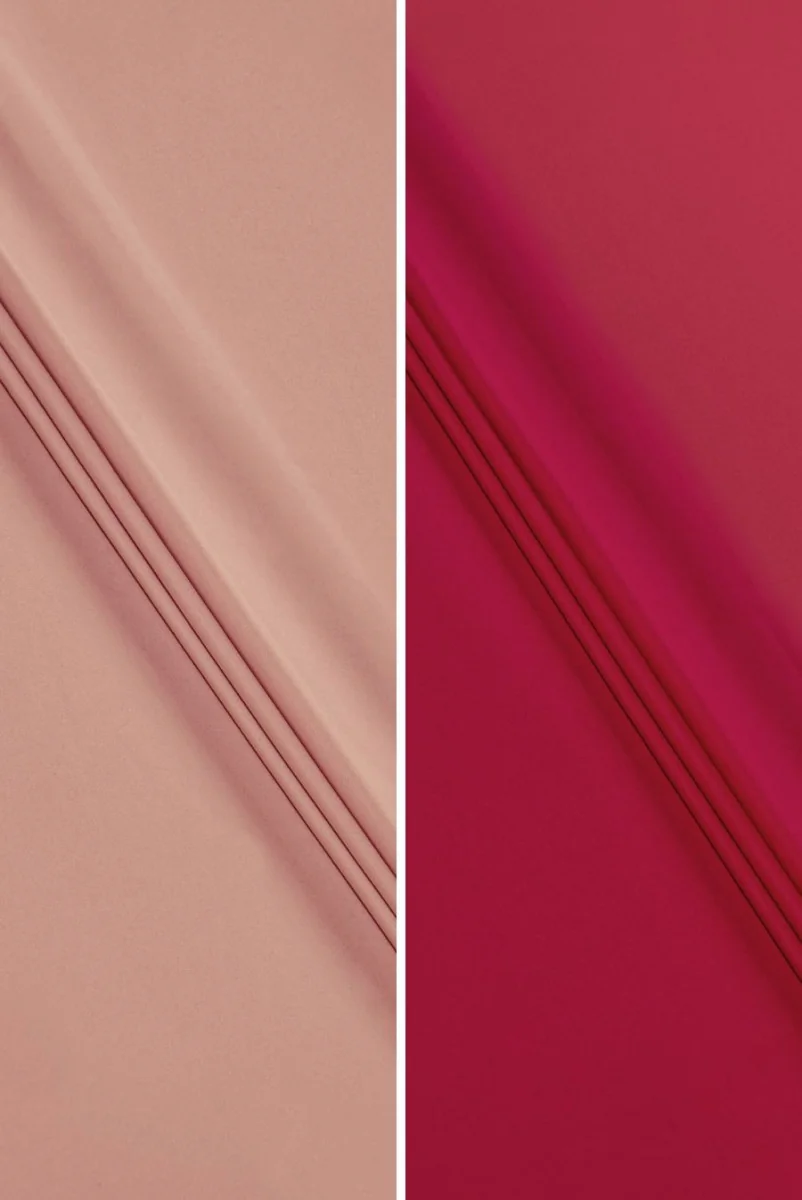 Italiaanse georgette geweven gebreide stof in drie prachtige kleuren om uit te kiezen. Georgette is een platbinding van gedraaide draden, waardoor het een karakteristiek, onregelmatig gerimpeld (korrelig) oppervlak heeft. Zachte, matte, zeer elastische stof - perfect voor het naaien van een smalle jurk of blouse.
