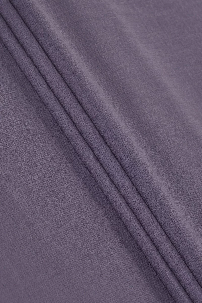 Italiaanse kostuumstof van 100% wol in gedempt paars (twee draadkleuren - licht- en donkerpaars). Een interessant, losser weefsel dat lijkt op georgette.