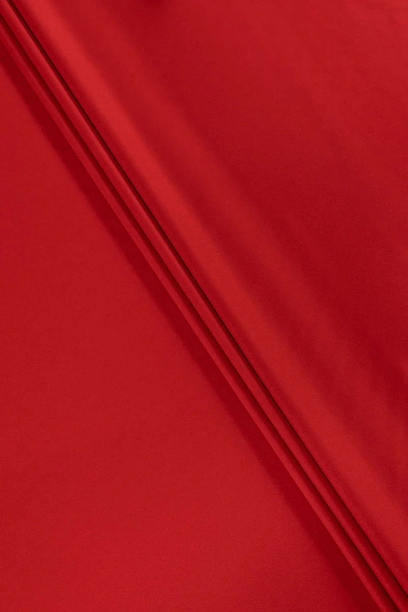 Italiaanse kostuumwol in baksteenrood. Wollen stoffen zijn ideaal voor herfst- en winterkleding, omdat ze warm zijn en tegelijkertijd de huid laten ademen. De toevoeging van kasjmier maakt het nog beter isolerend, omdat kasjmier warmer is dan schapenwol.
