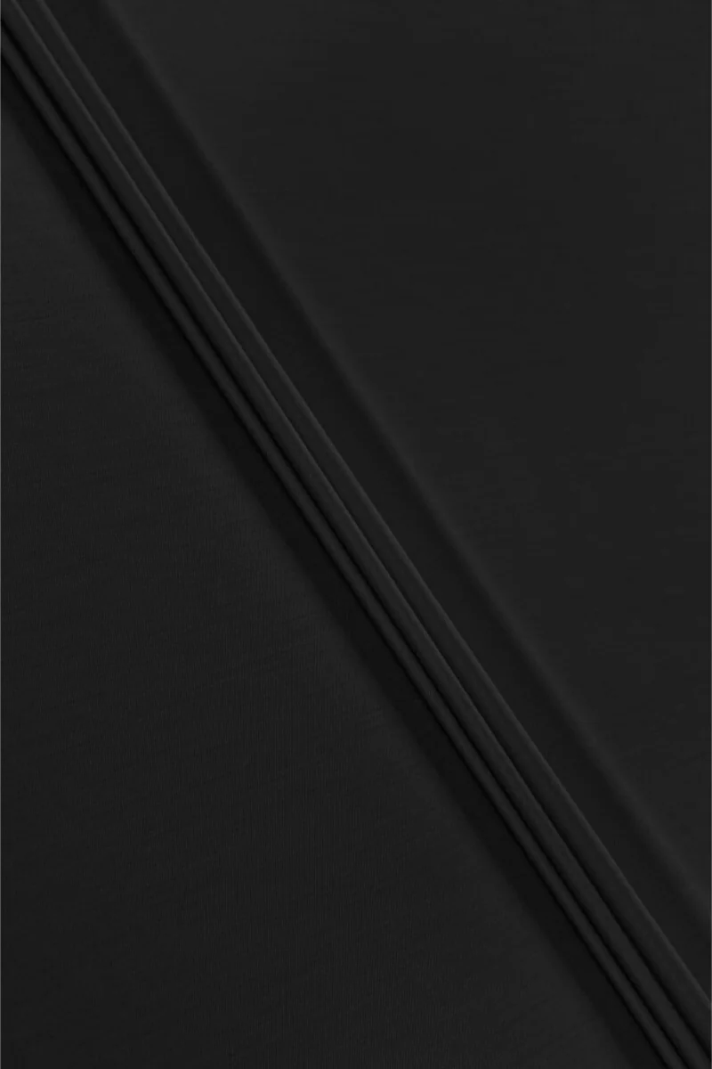 Italiaanse kostuumstof gemaakt van natuurlijke vergewol met een mengsel van kasjmier in het zwart. Het materiaal is dunner, maar ondoorzichtig, heeft een gladde weefsel en hoewel het geen elastaan bevat, rekt het licht uit op de vezels. De toevoeging van kasjmier geeft het adel en een prachtige glans. De stof is zacht en erg aangenaam om aan te raken. Het is perfect om klassieke kleding te naaien, zoals een jurk, rok of broek. Een fantastisch voorstel voor mensen die waarde hechten aan goede soorten en klassieke kleuren.