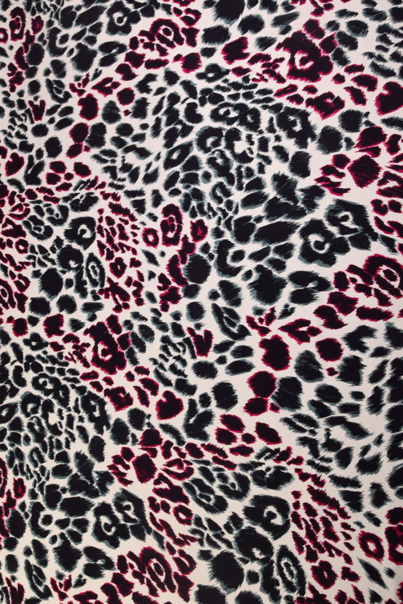 Dikkere grosgrain stof met een grote, kleurrijke luipaardprint - op een zwarte met groene en rode ecru panterachtergrond. We raden het aan voor het naaien van rokken, jassen, jassen, jassen. Stabiele stof.