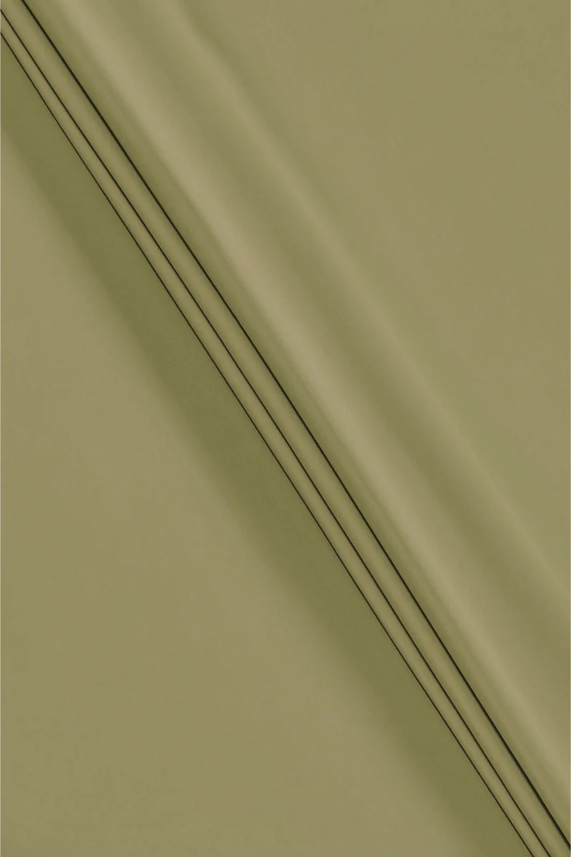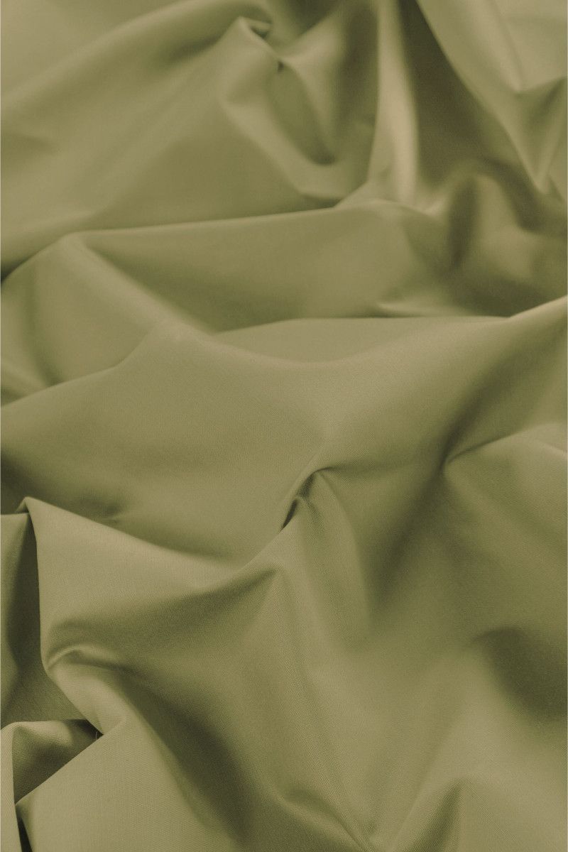 Italiaans overhemd katoen in olijfkleur. Een dunne maar ondoorzichtige stof met een gladde, matte weving bedoeld voor het naaien van een overhemd, blouse of jurk. Een natuurlijke stof van zeer goede kwaliteit, onvervangbaar in de lente en zomer.