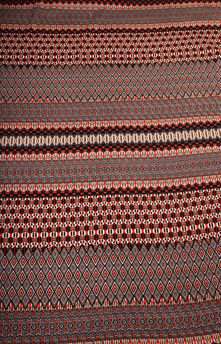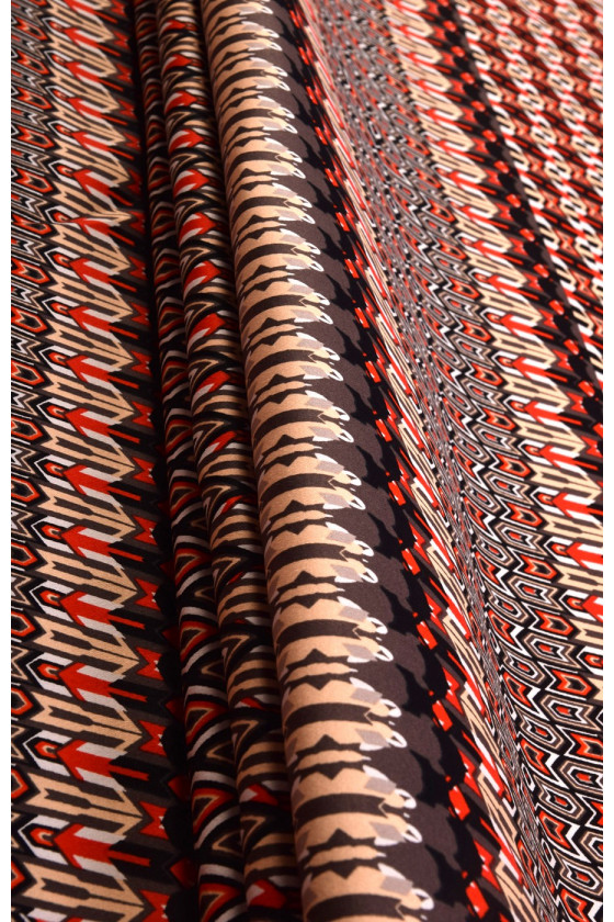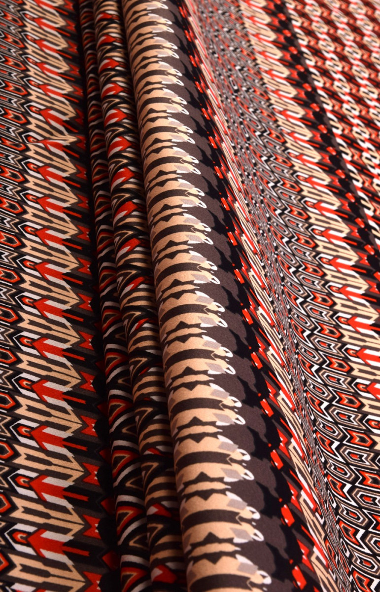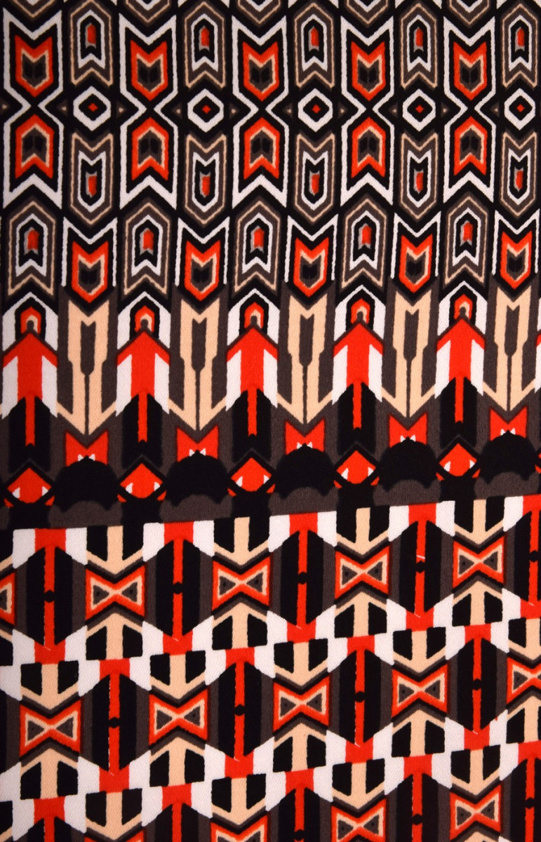 Katoen met elastaan met een Afrikaans patroon is een middeldikke ondoorzichtige stof.