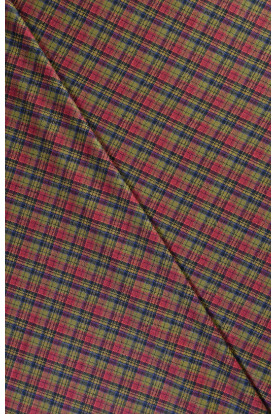 Mooie geruite kostuumstof voor jurken, rokken, jassen. Geweven van natuurlijke wol met een mengsel van polyester. De stof is niet-elastisch, middeldik. Ontworpen voor chemisch reinigen.