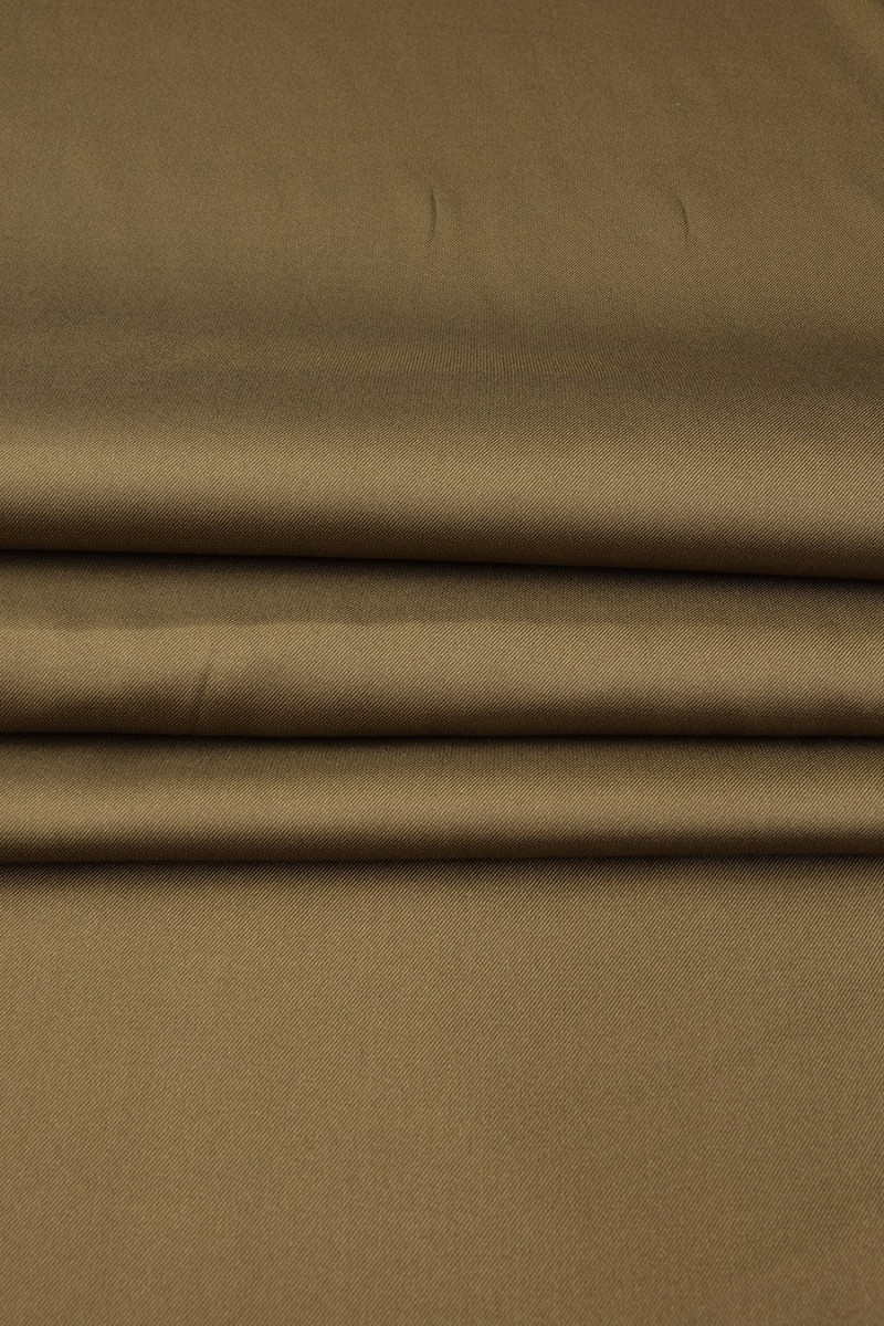 Elastische zijde in olijfkleur. Het kan worden gebruikt om luchtige jurken, delicate blouses, rokken tevoorschijn te toveren. Het kan ook worden gebruikt als basis voor delicatere zijde en kant.