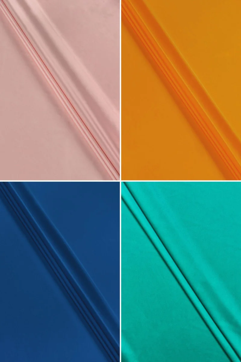 Polyester satijn, elastisch, 145 cm breed. De stof voelt delicaat en fluweelzacht aan, met een lichte glans. Grote keuze aan kleuren - selecteer de juiste kleur voordat u koopt.
