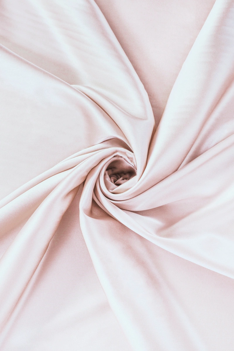 Italiaans viscose satijn in een zeer lichtroze kleur. De stof is zacht, vloeiend, elastisch, voelt zacht aan en is ondoorzichtig. Het valt prachtig en de satijnen afwerking voegt er elegantie aan toe. Het kan worden gebruikt om luchtige jurken, rokken, overhemden of blouses tevoorschijn te toveren. Het kan ook een basis zijn voor meer delicate stoffen en kant.
