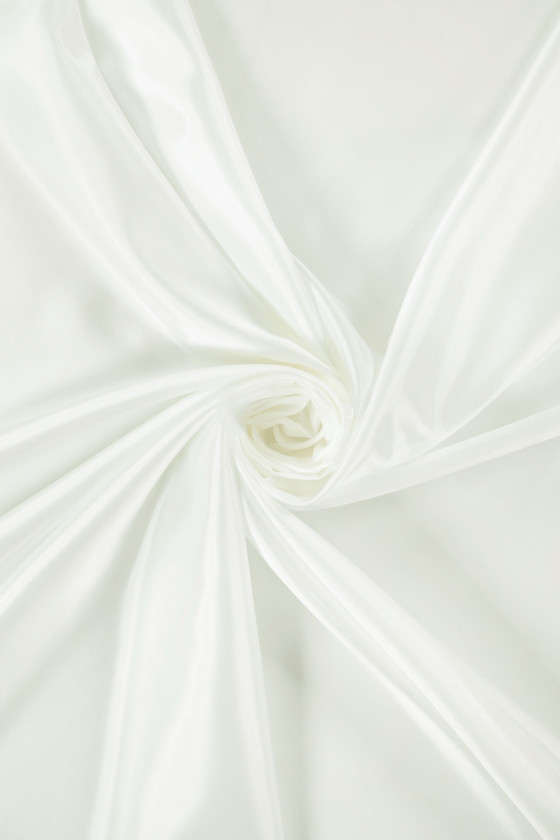 Italiaanse voering geweven van crèmekleurig polyester en viscose. Een niet-elastische stof, licht glanzend, van gemiddelde dikte, met een delicaat keperweefsel. Perfect voor het voeren van jassen, jassen, vesten, jassen.