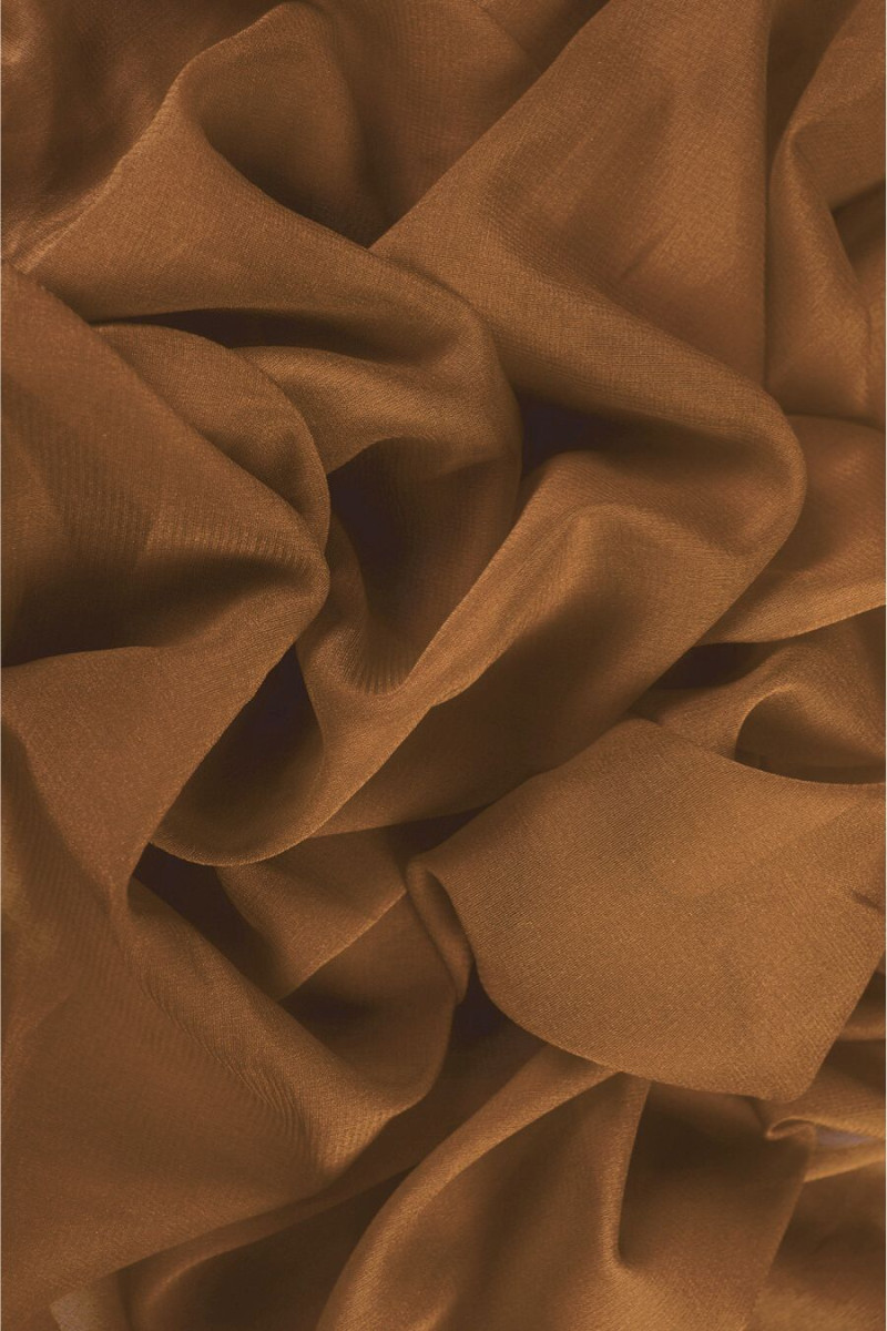 Italiaanse georgette 100% zijde in de kleur van oud goud. De stof is dun 90 cm breed, transparant, ademend, ademend, niet-elastisch. Perfect voor blouses, luchtige jurken.