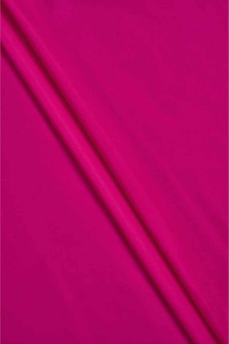 Italiaanse 100% zijden shandong stof in fuchsia kleur. De stof is gladder met lichte verdikkingen. Het is ondoorzichtig, inelastisch, vrij stijf en zeer elegant. Het is perfect voor avondjurken, rokken, blouses en jassen.