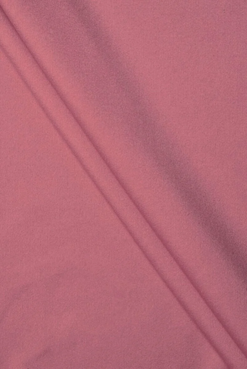 Italiaanse kostuumstof gemaakt van zijde en katoen in roze met een druppel paars. Het is geweven uit twee kleuren draden - roze en zwart, die een tweekleurig effect creëren. Het materiaal is middeldikte met een fijne borstelharen, zacht en aangenaam om aan te raken. Het is perfect om herfst- en winterkleding te naaien, zoals een rok, jas of een dun jasje en jasje. Een fantastisch alternatief voor wollen stoffen.